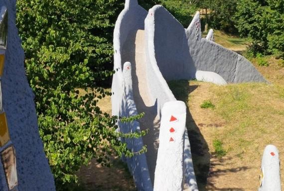 Alter: 3 – 14 JahrenAusstattung: Sitzbänke, Picknick Sitzgruppen, Freifläche zum spielen, Halbschatten, SonneSpielgeräte: Wasserspielbereich, Rutsche, Vogelnestschaukel