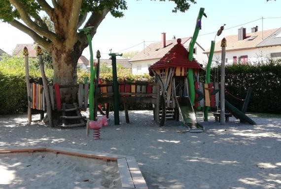 Alter: 3 – 12 JahrenAusstattung: Sitzbänke, Sonne, HalbschattenSpielgeräte: Sandkasten, Wipptiere, Doppelschaukel, Kombinationsanlage, Tornado mit Rutsche, Drehwirbel