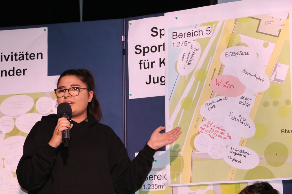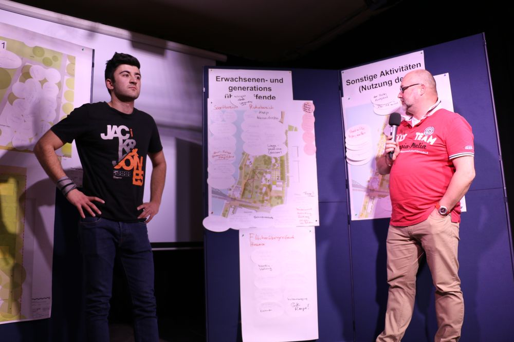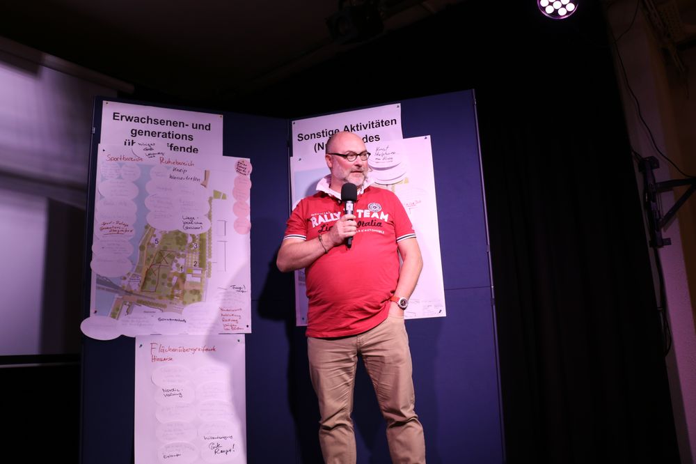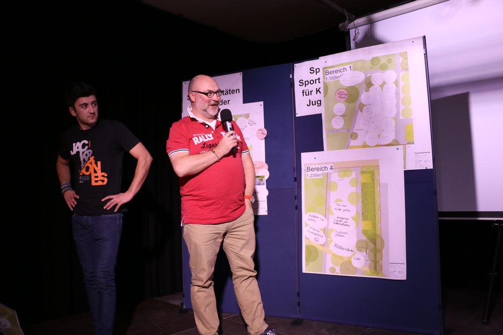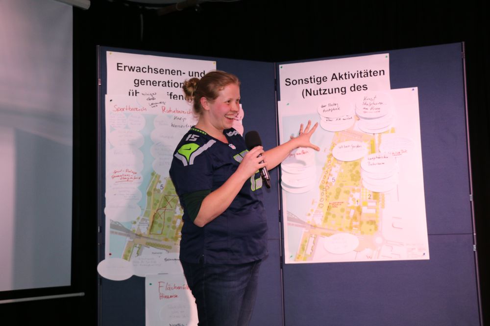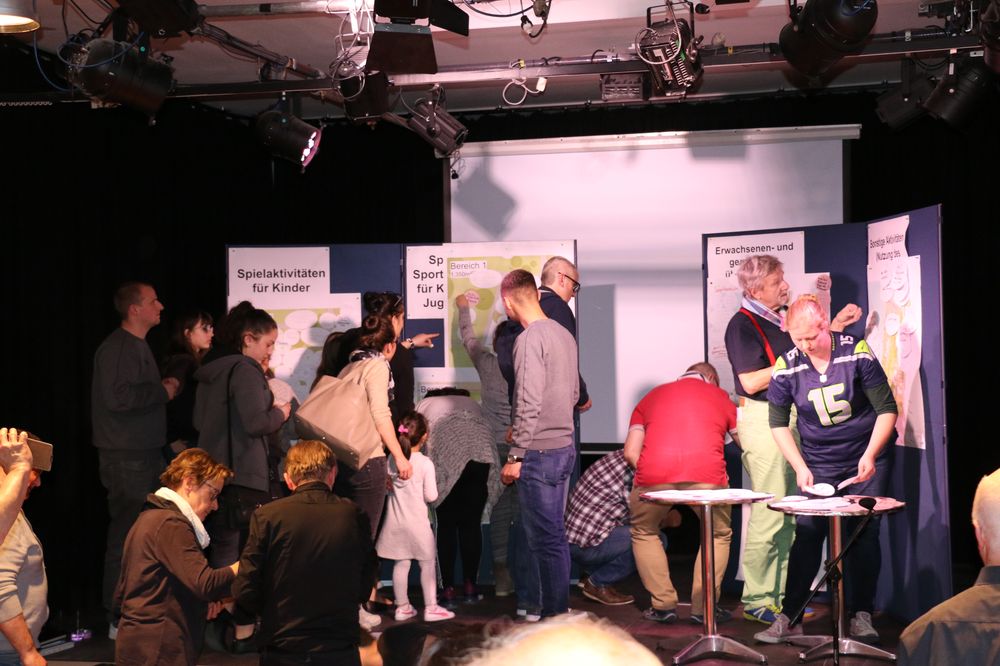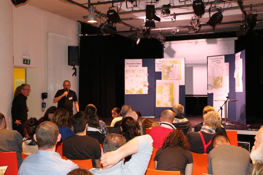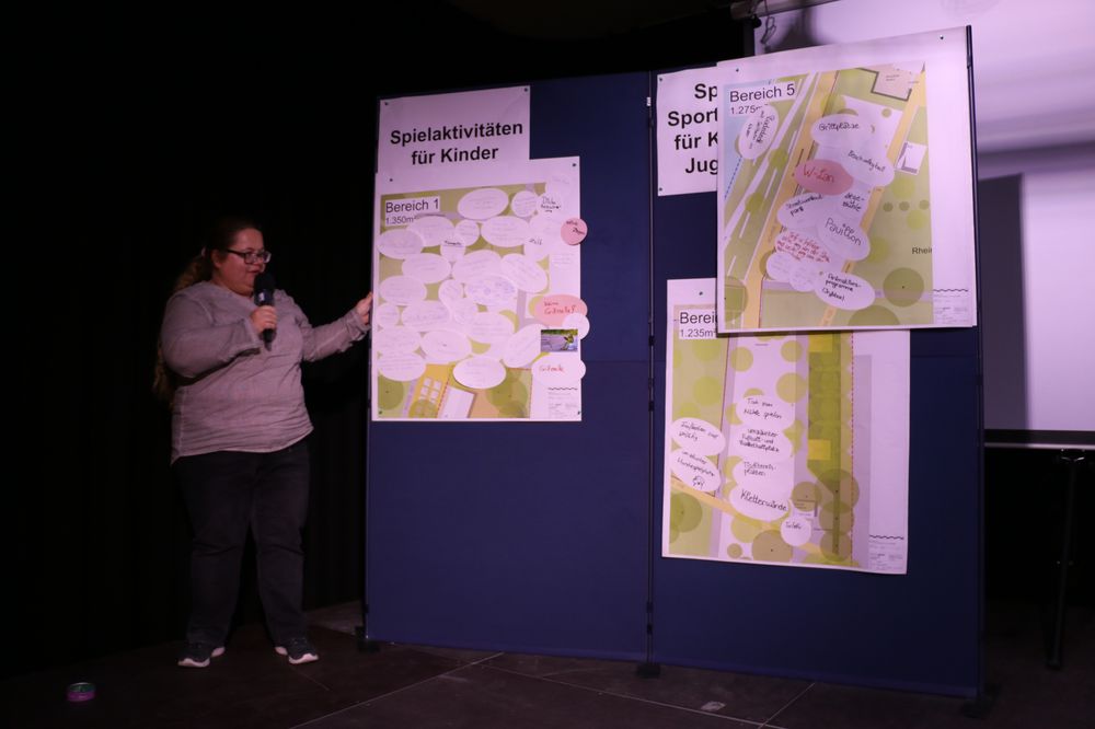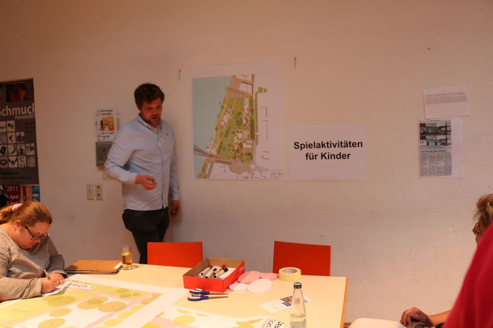 Vier moderierte Arbeitsgruppen erarbeiteten Vorschläge für die fünf "Aktivitätsfelder", die die Planung der Landschaftsarchitekten des Büros faktorgruen aus Freiburg bereits vorsieht. Dabei ging es um Spielaktivitäten für Kleinkinder, Spiel- und Sportaktivitäten für Kinder- und Jugendliche, Erwachsenen- und generationenübergreifende Bewegungsaktivitäten sowie sonstige Aktivitäten.