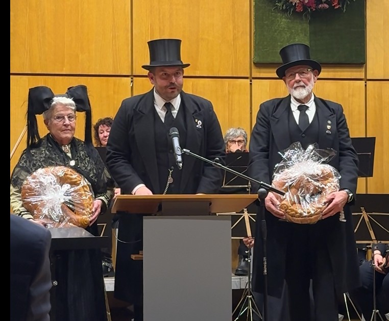 Launige, auf alemannisch vorgetragene Neujahrsgrüße überbrachte einmal mehr die Markgräfler Trachtengruppe um Michael Lindemer. Natürlich hatten sie auch wieder zwei riesige Neujahrsbrezeln für die Verwaltungsspitze mitgebracht. Im Anschluss an den offiziellen Teil konnten sich die Besucherinnen und Besucher im Foyer in ungezwungener Atmosphäre unterhalten und dabei das umfangreiche Buffet genießen.
