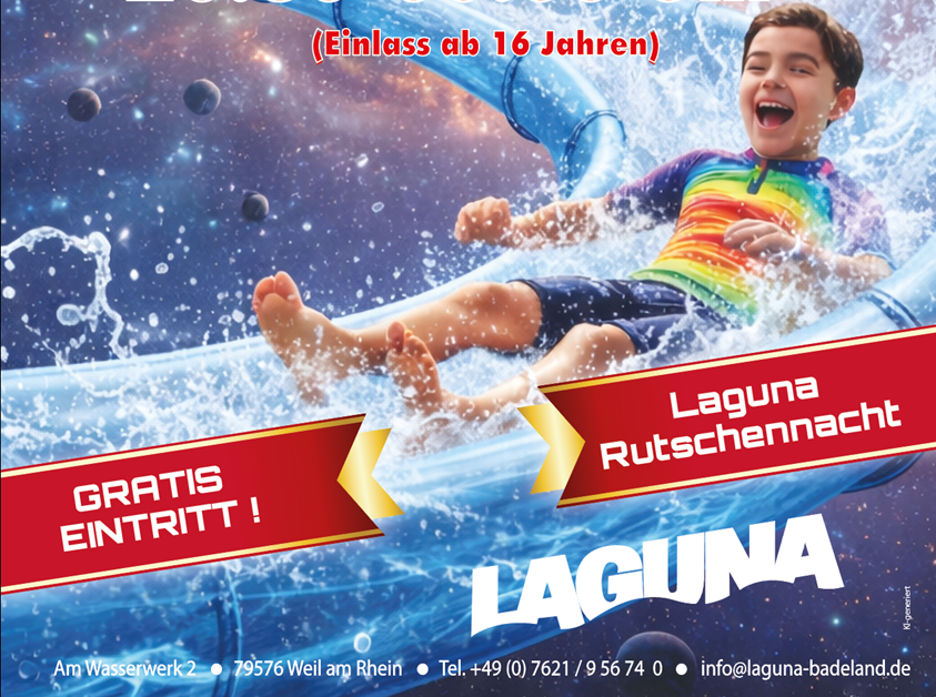 Wie das Badeland Laguna mitteilit, wird am 14. März die neue Rutsche eröffnet. Bereits am Vorabend, Freitag, 13. März, planen die Verantwortlichen ein exklusives PreOpening für Vereine aus Weil am Rhein.