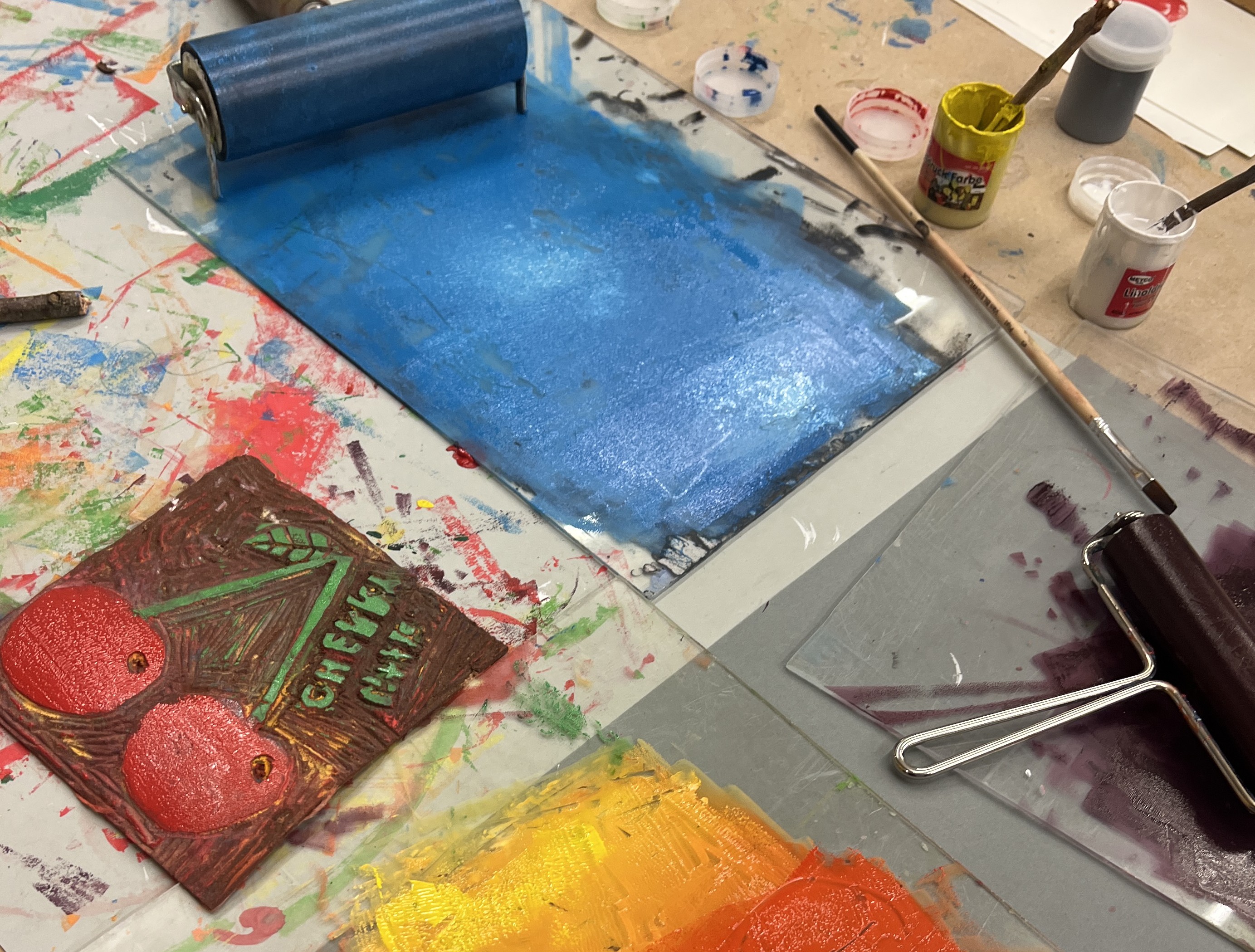Dabei lernen sie spielerisch die Technik des Druckens kennen. Ob strahlende Wintersonne, kugelige Schneemänner oder Schneeflocken – der kindlichen Fantasie sind keine Grenzen gesetzt.