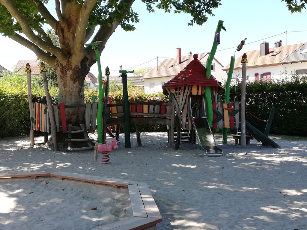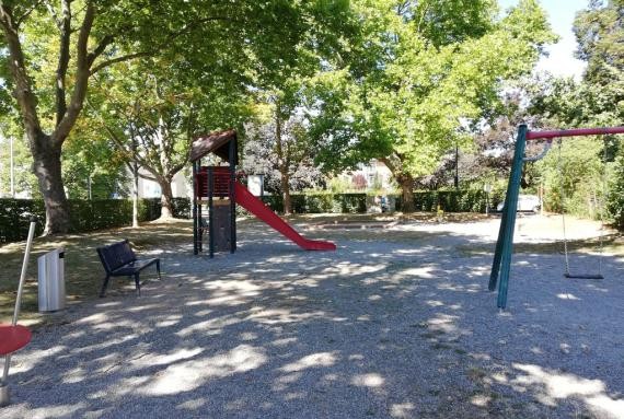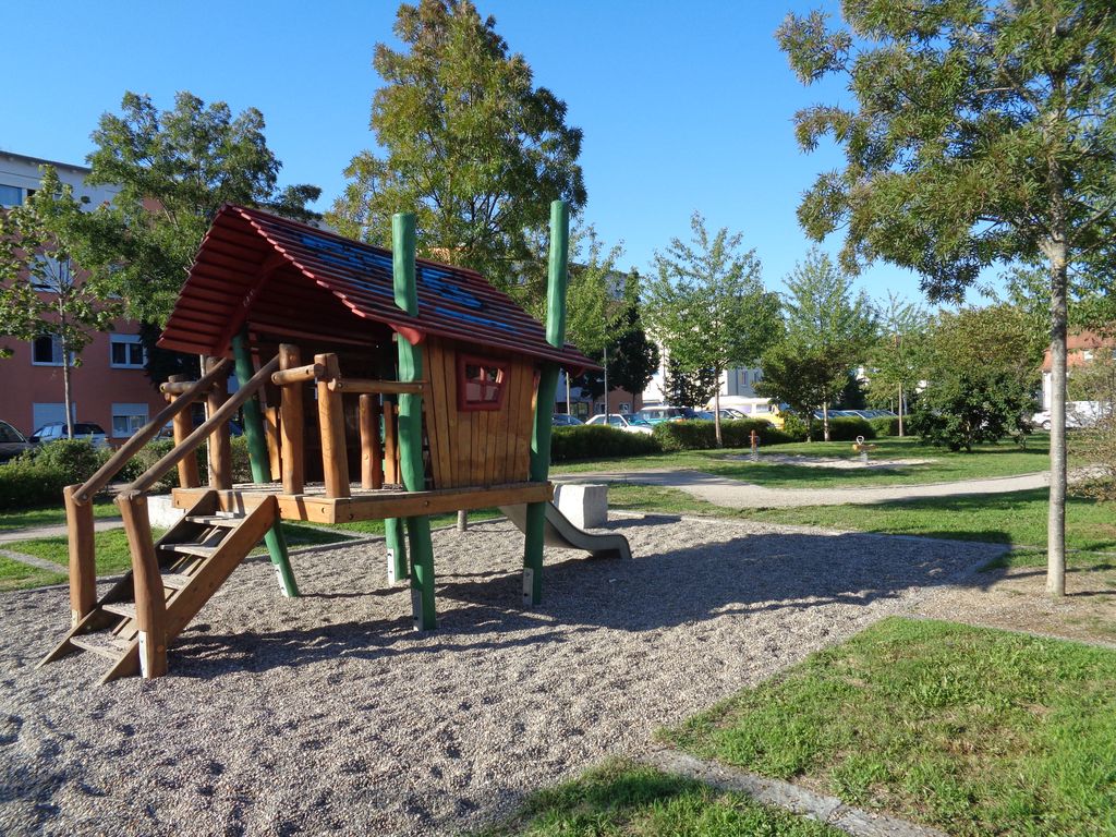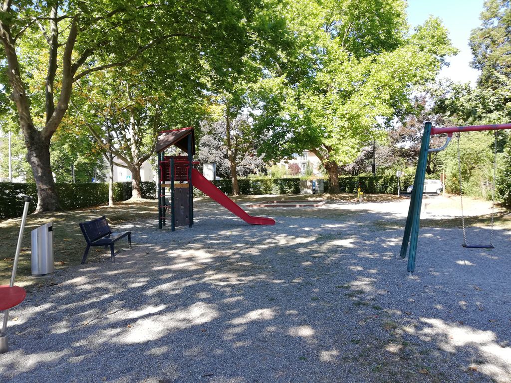 Alter: 3 – 12 JahrenAusstattung: Sitzbänke, Sonne, HalbschattenSpielgeräte: Sandkasten, Wipptiere, Doppelschaukel, Kombinationsanlage, Tornado mit Rutsche, Drehwirbel