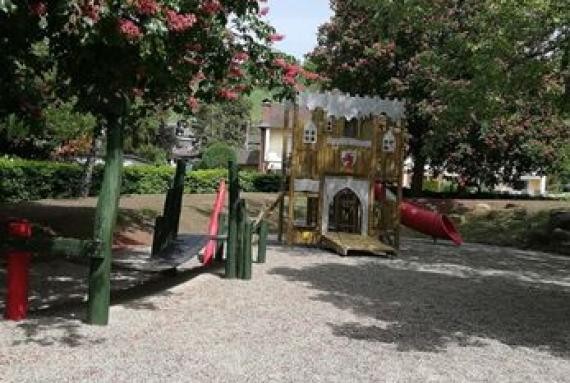Alter: 3 – 14 JahrenAusstattung: Sitzbänke, Picknick Sitzgruppen, Freifläche zum spielen, Halbschatten, SonneSpielgeräte: Wasserspielbereich, Rutsche, Vogelnestschaukel