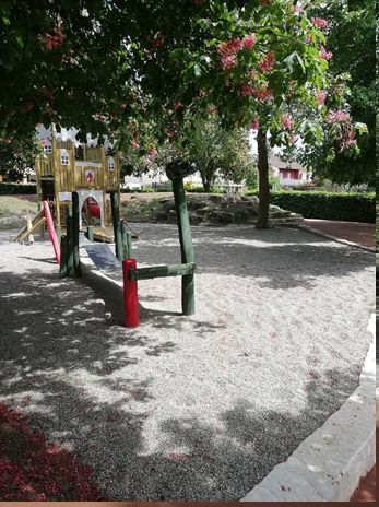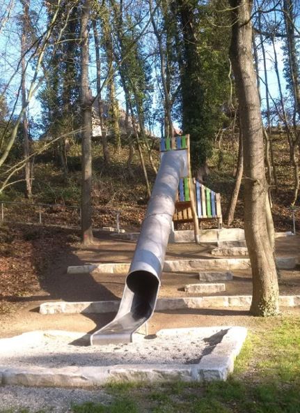 Alter: 6 – 14 JahrenAusstattung: Sitzbänke, Freifläche zum spielen, SonneSpielgeräte: Seilbahn, Karussell, Kombination Spielanlage mit Rutsche