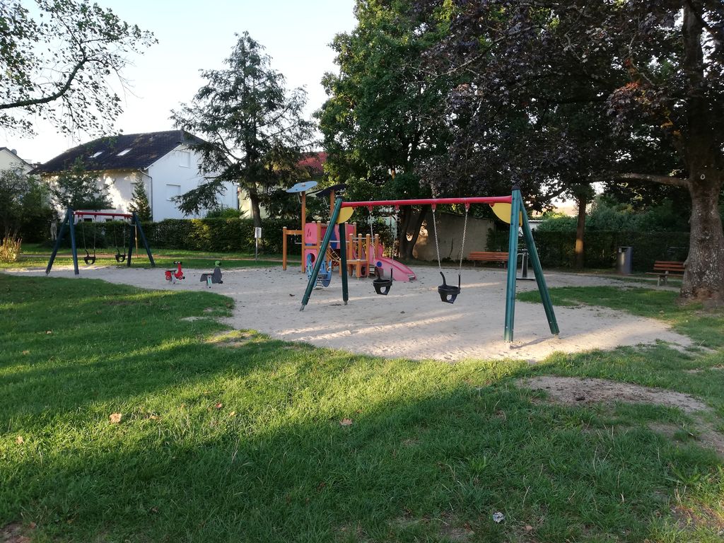 Alter: 3 – 14 JahrenAusstattung: Sitzbänke, Sonne, HalbschattenSpielgeräte: Sandkasten, Doppelschaukel, Kombinationsanlage Ritterburg, Hüpfdrache