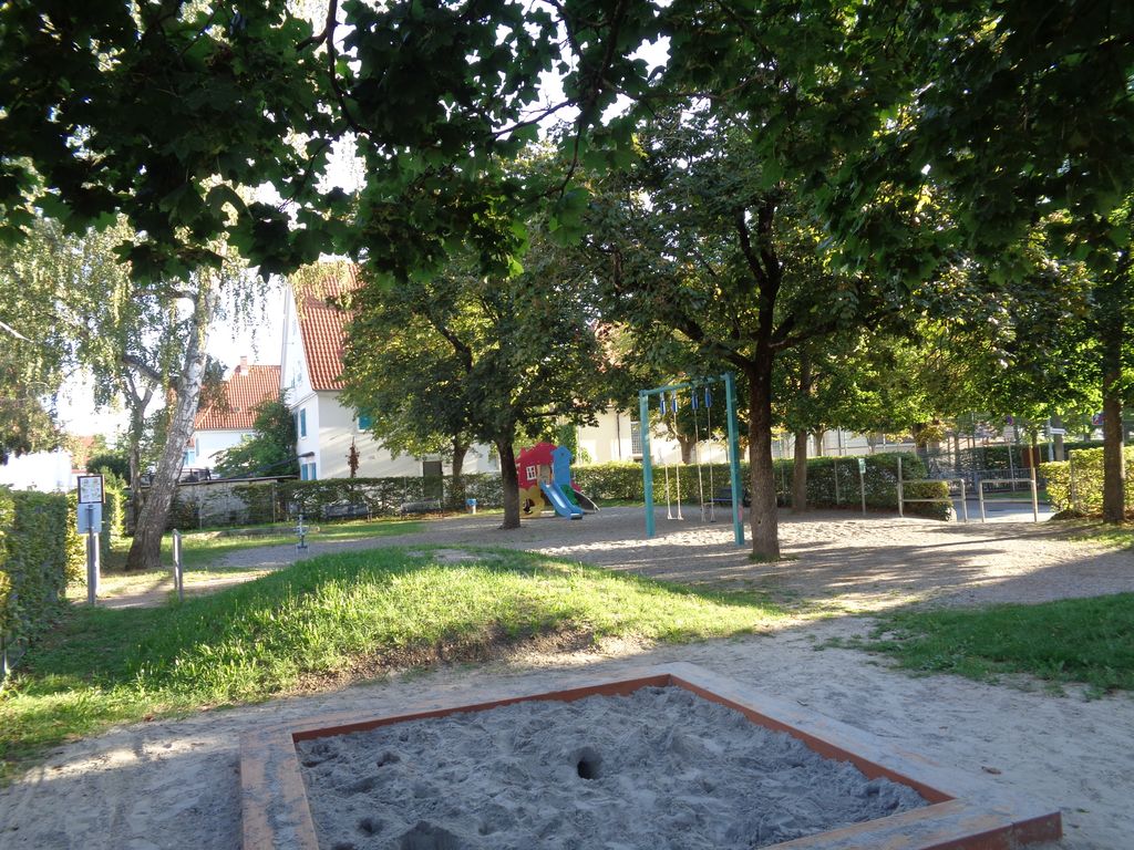 Alter: 3 – 12 JahrenAusstattung: Sitzbank, Freifläche zum spielen, Sonnig, HalbschattenSpielgeräte: Sandkasten