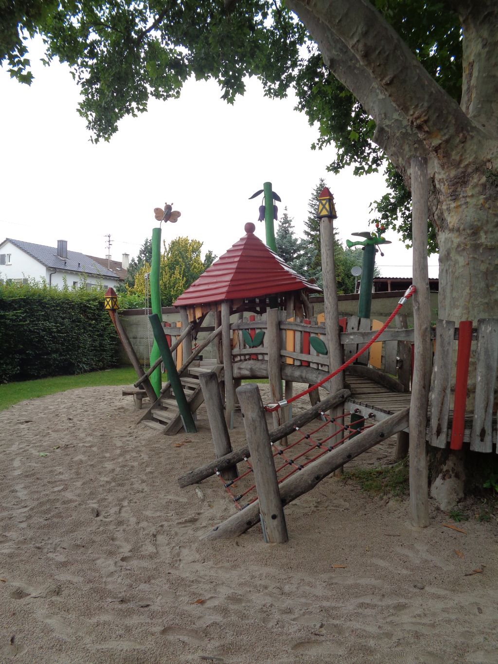 Alter: 3 – 12 JahrenAusstattung: Sitzbank, Sonne, HalbschattenSpielgeräte: Kleinkinder Kombianlage mit Rutsche