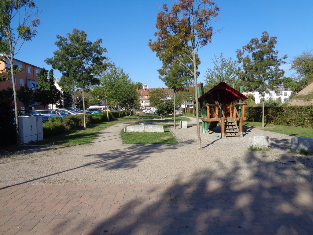 Alter: 6 – 14 JahrenAusstattung: Sitzbänke, Sitzsteine, Freiflächen zum spielen, SonneSpielgeräte: Wipptiere, Kombinationsanlage mit Rutsche, Kletterkombination