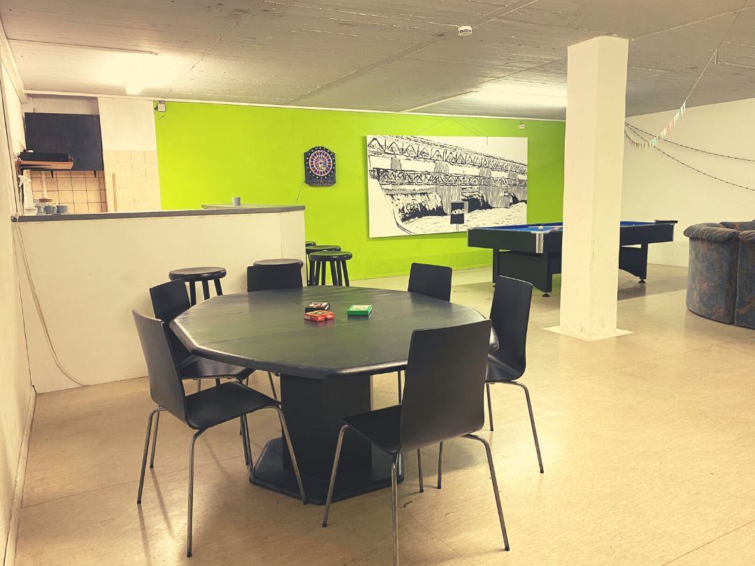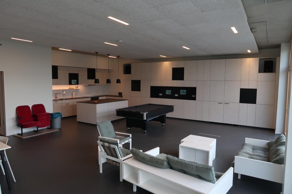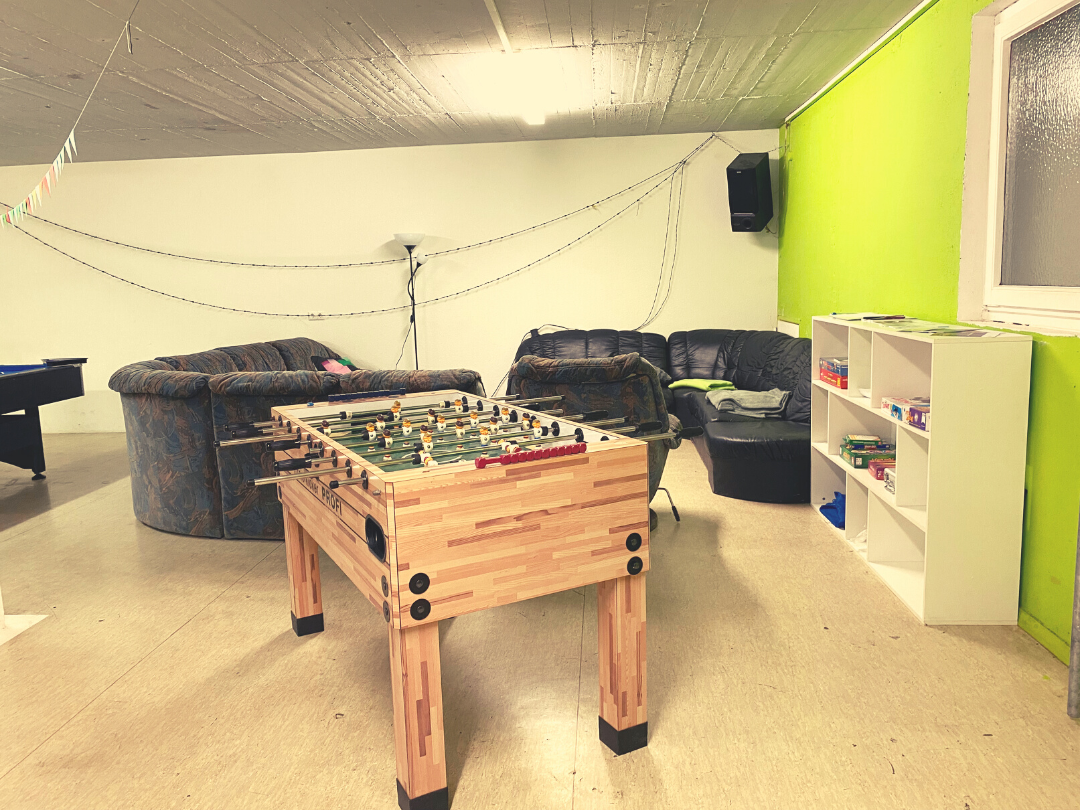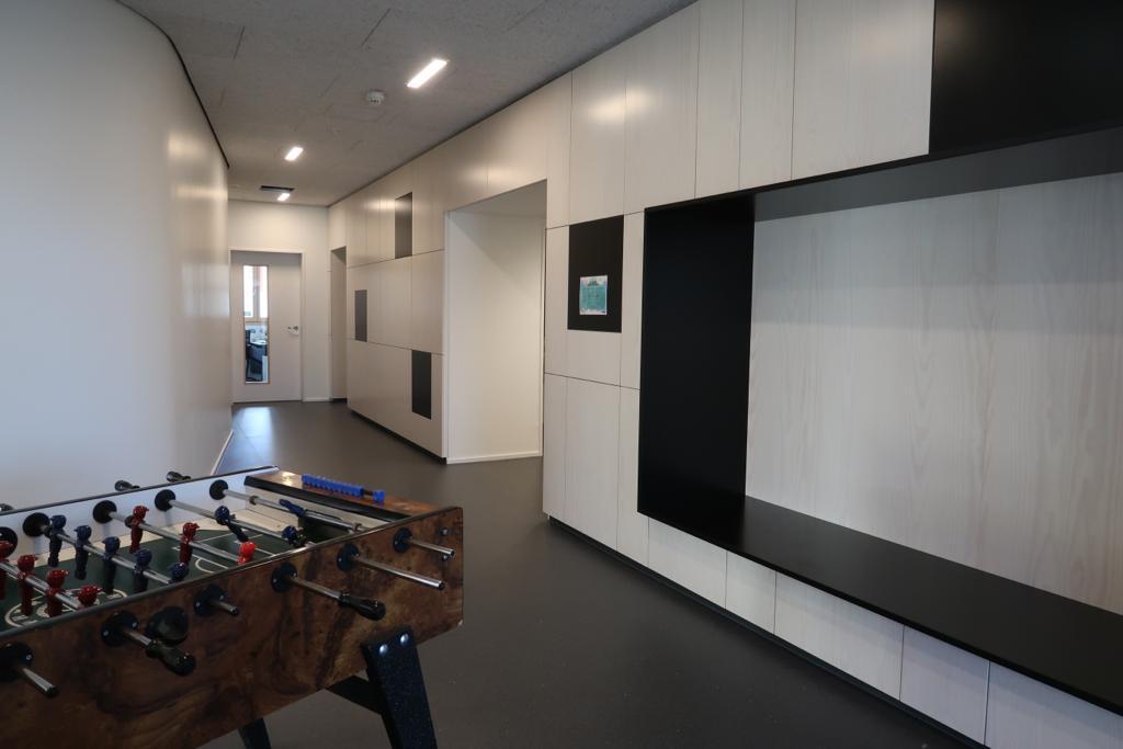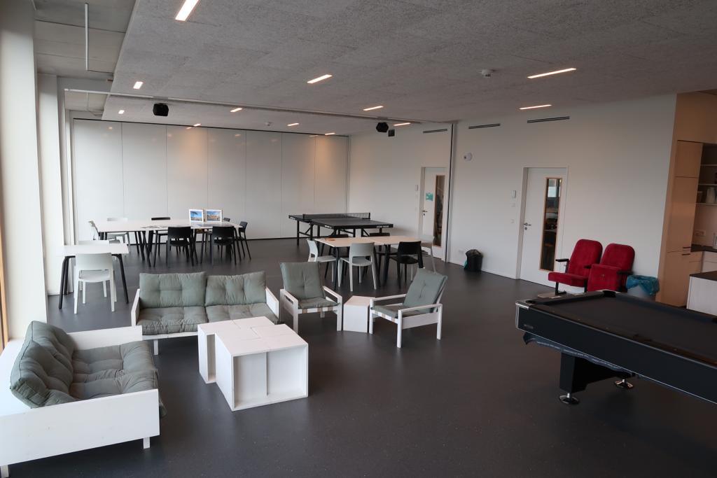 Die flexiblen Trennwände im Hauptraum sorgen dafür, dass auch nach Fertigstellung des Gebäudes, die Räumlichkeiten im Sinne der Besuchenden gestaltet werden können. Die neue Küche mit großer Arbeitsfläche eignet sich hervorragend für gemeinsame Kochangebote. Neben vielen Möglichkeiten, die das Haus im Rahmen seines Offenen Treffs zu bieten hat (Airhockey, Darts, Billard, etc.) erstreckt sich das vielfältige Angebot des Friedlinger Jugendzentrums von der Einzelfallhilfe, über die Gestaltung der Schulferien bis hin zu außerschulischen Bildungsinhalten, welche auf Basis der Wünsche und Anliegen der Besuchenden umgesetzt werden.